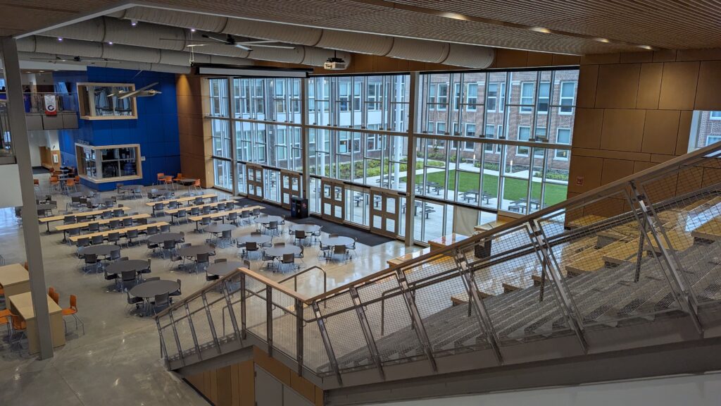 The central commons is a large gathering space at the heart of the school, perhaps the most transformative part of the modernization project.