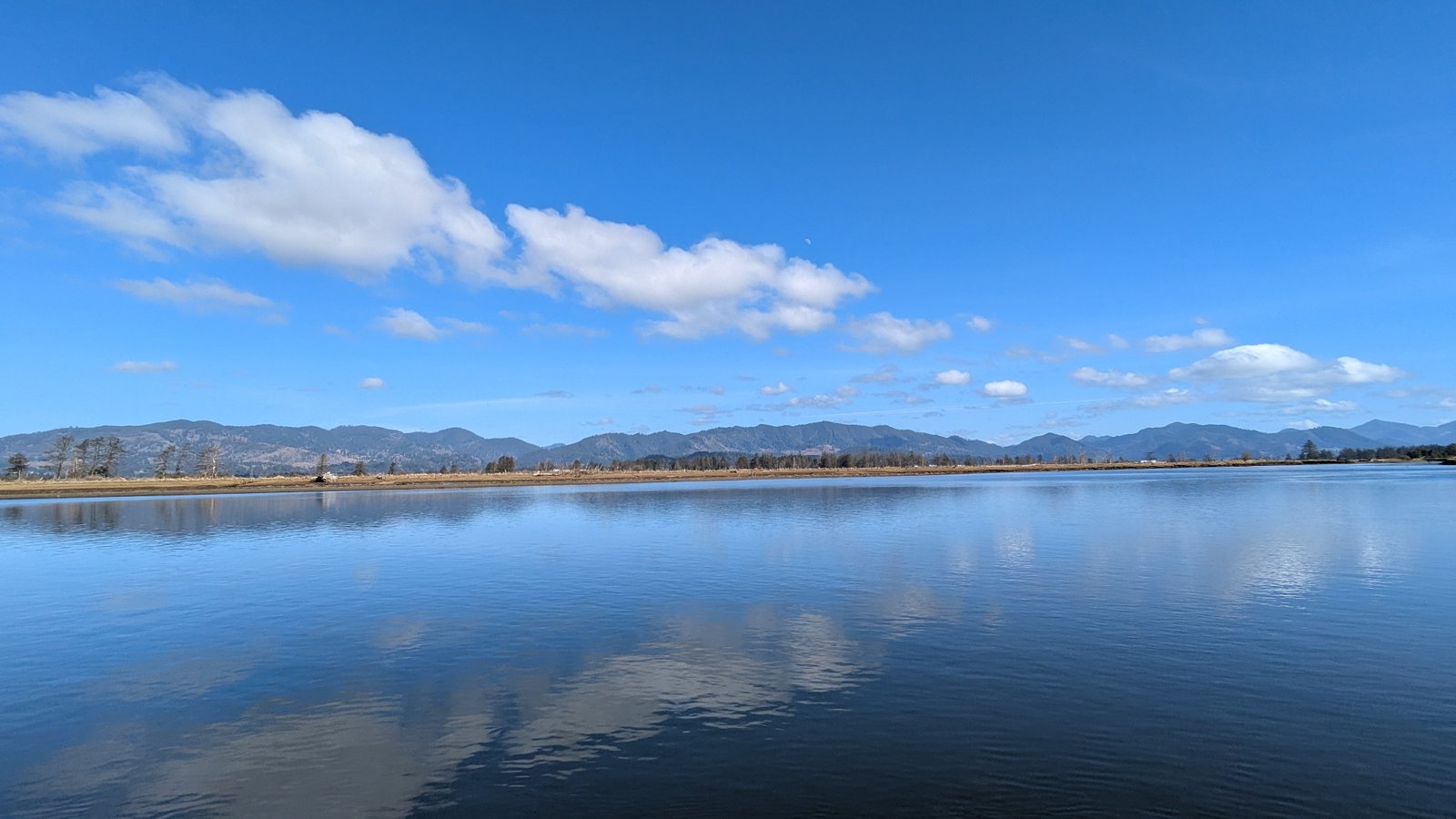 Reflective view across the mouth of the Tillamook River near Bayocean Rd.