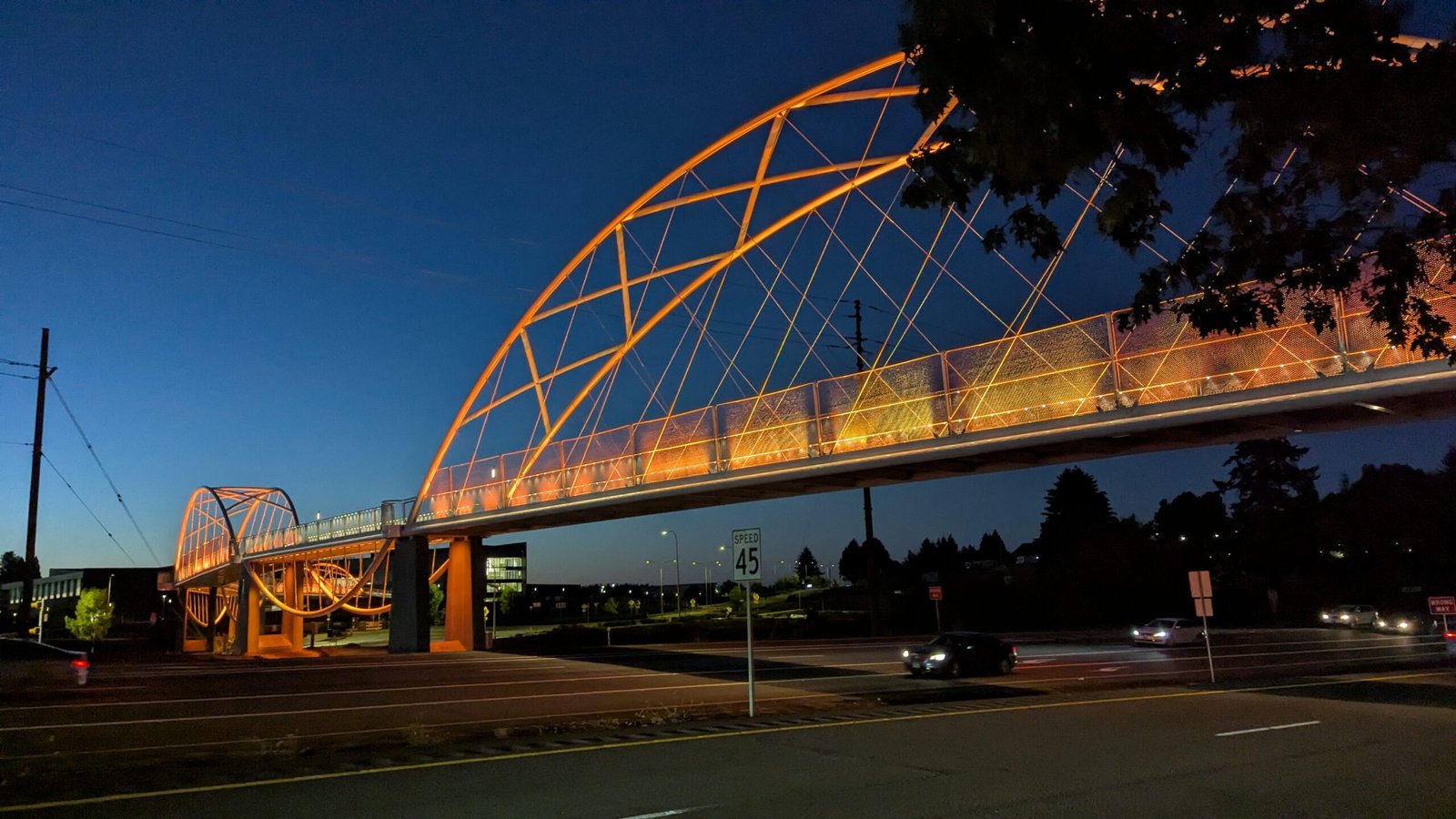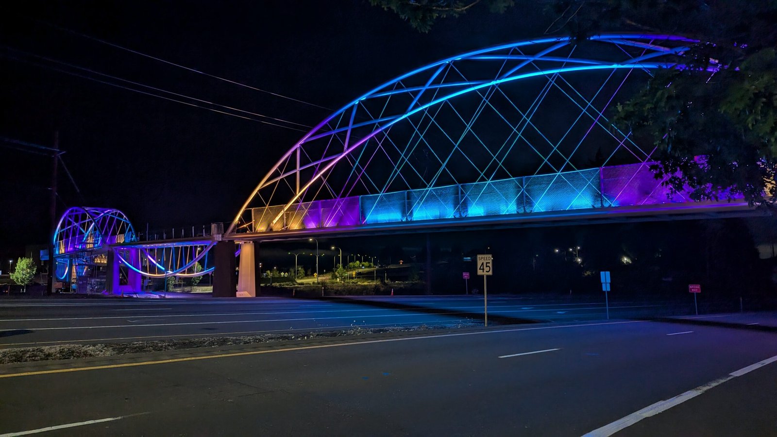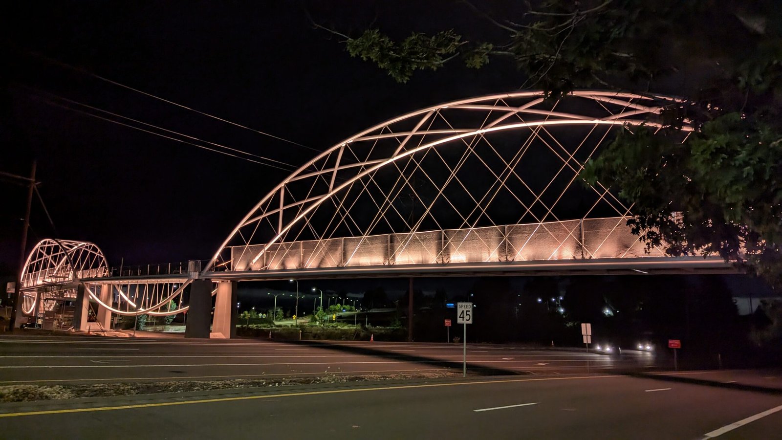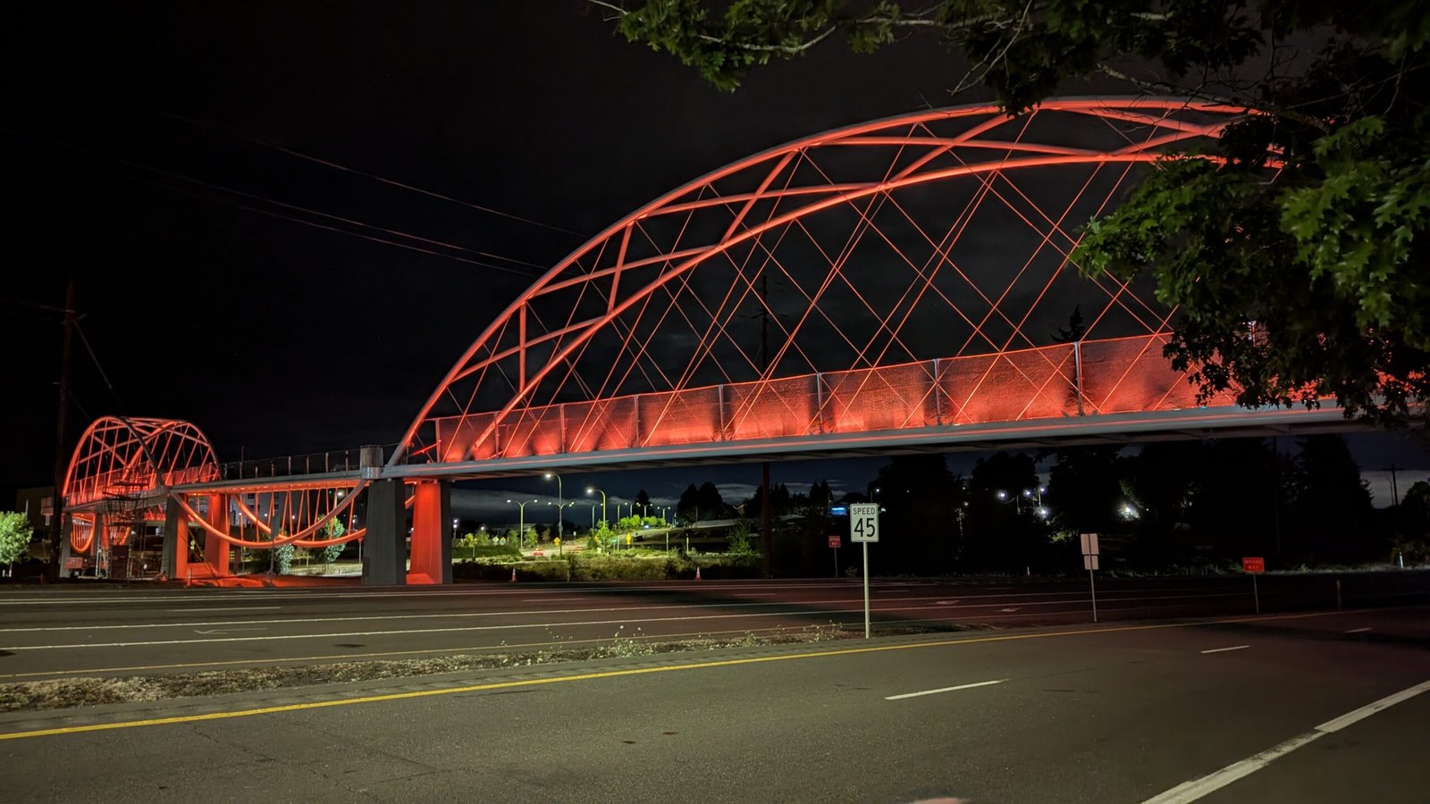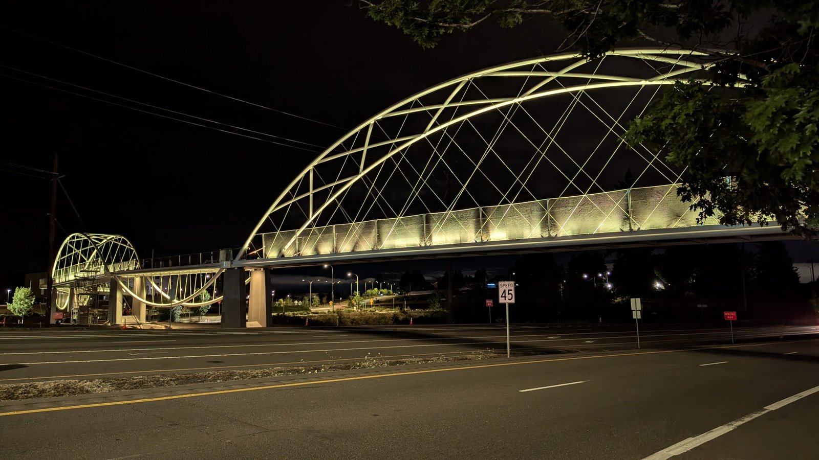 One year into construction, Sherwood’s Bicycle and Pedestrian Bridge over Highway 99W came to life in a matter of weeks when the bridge spans were installed this spring.