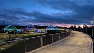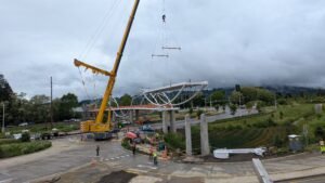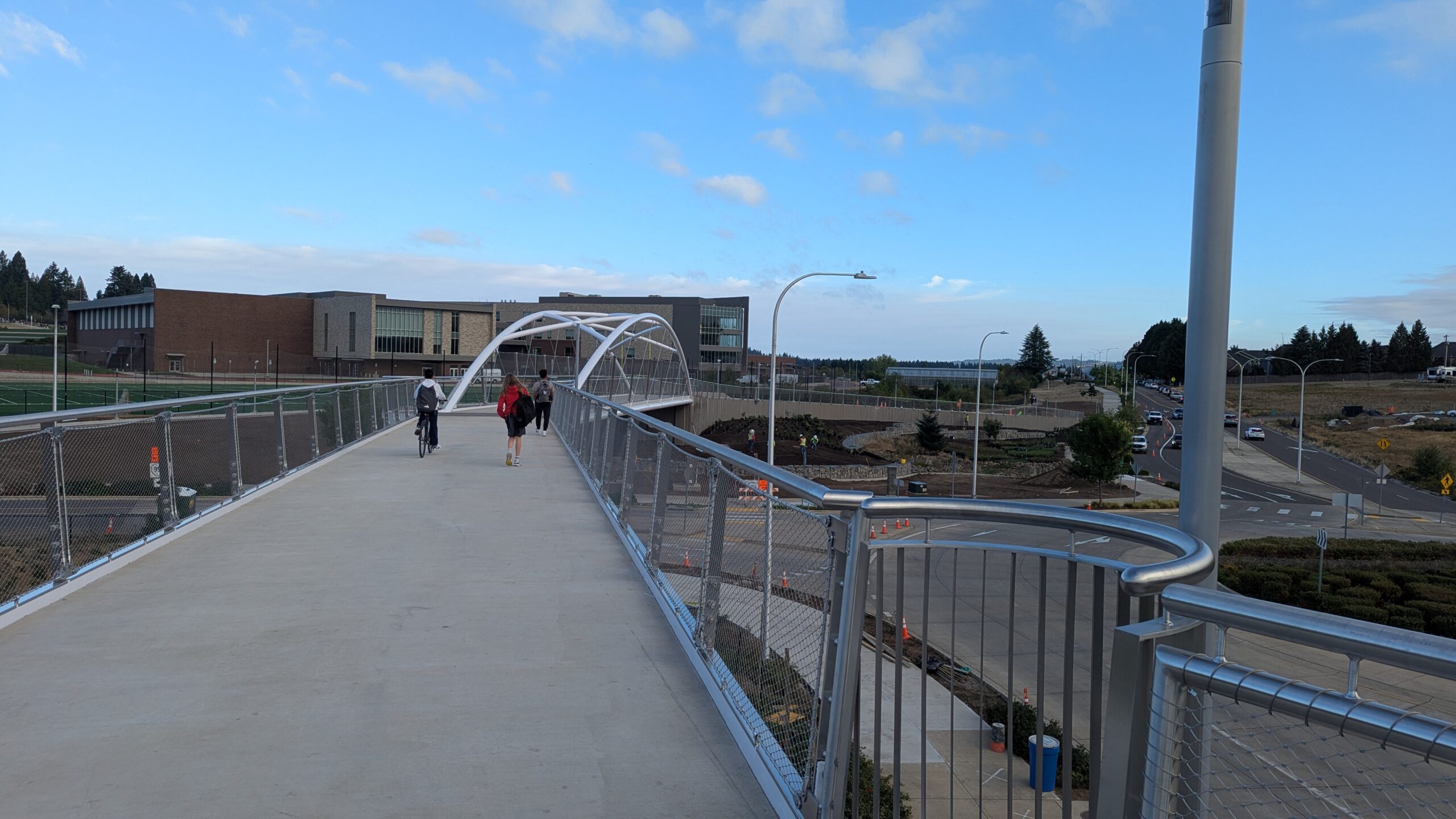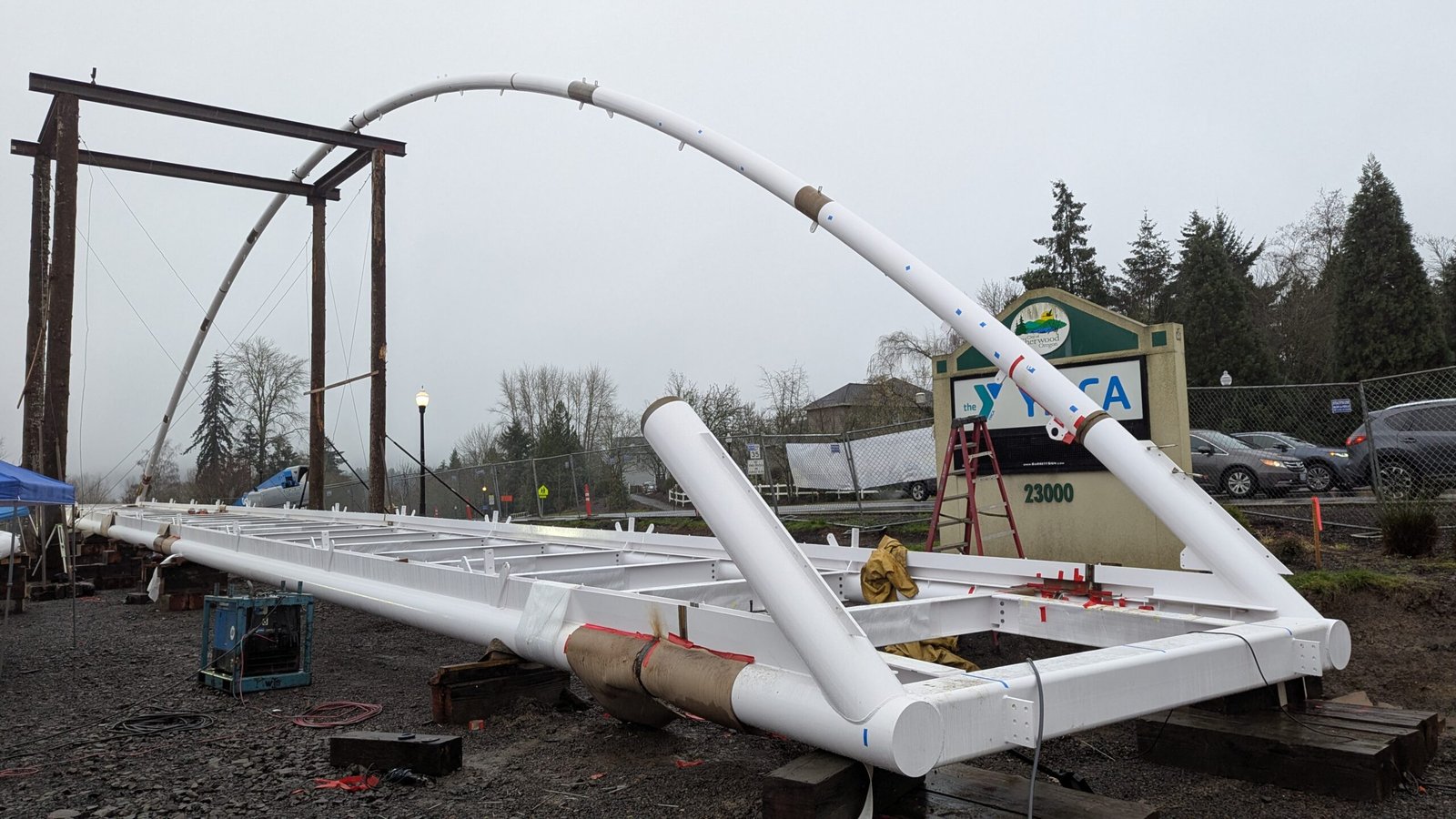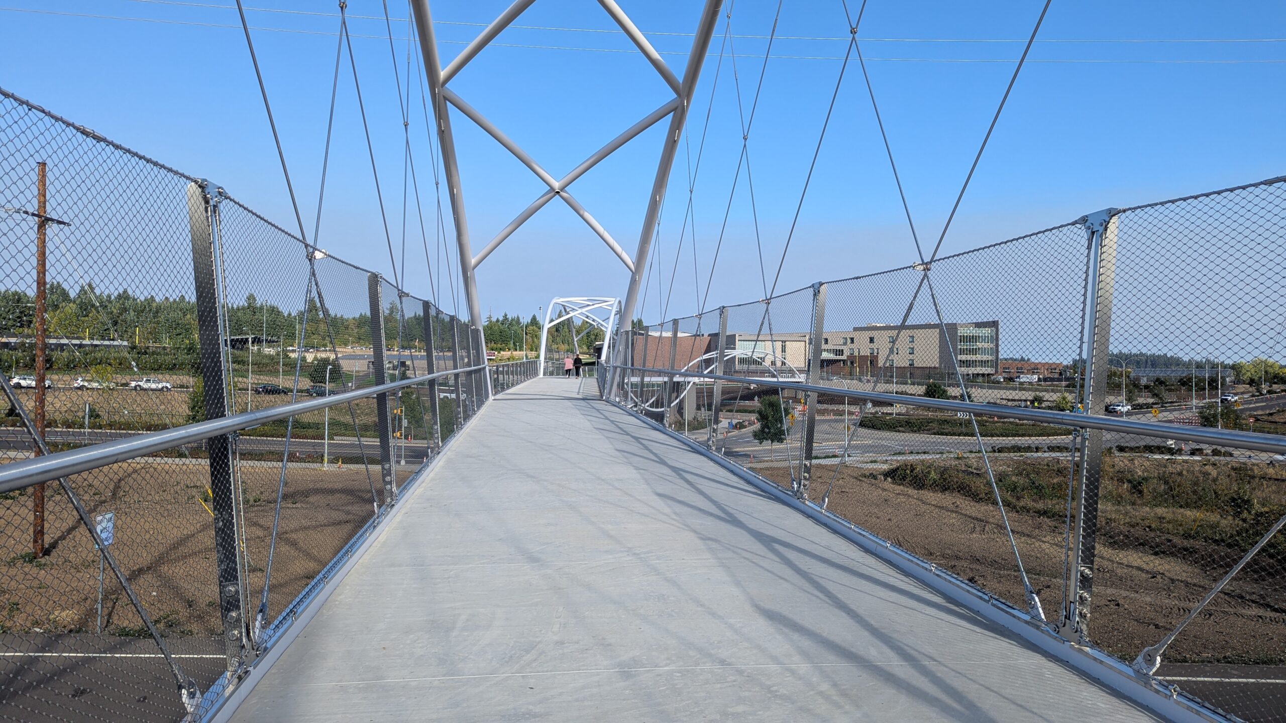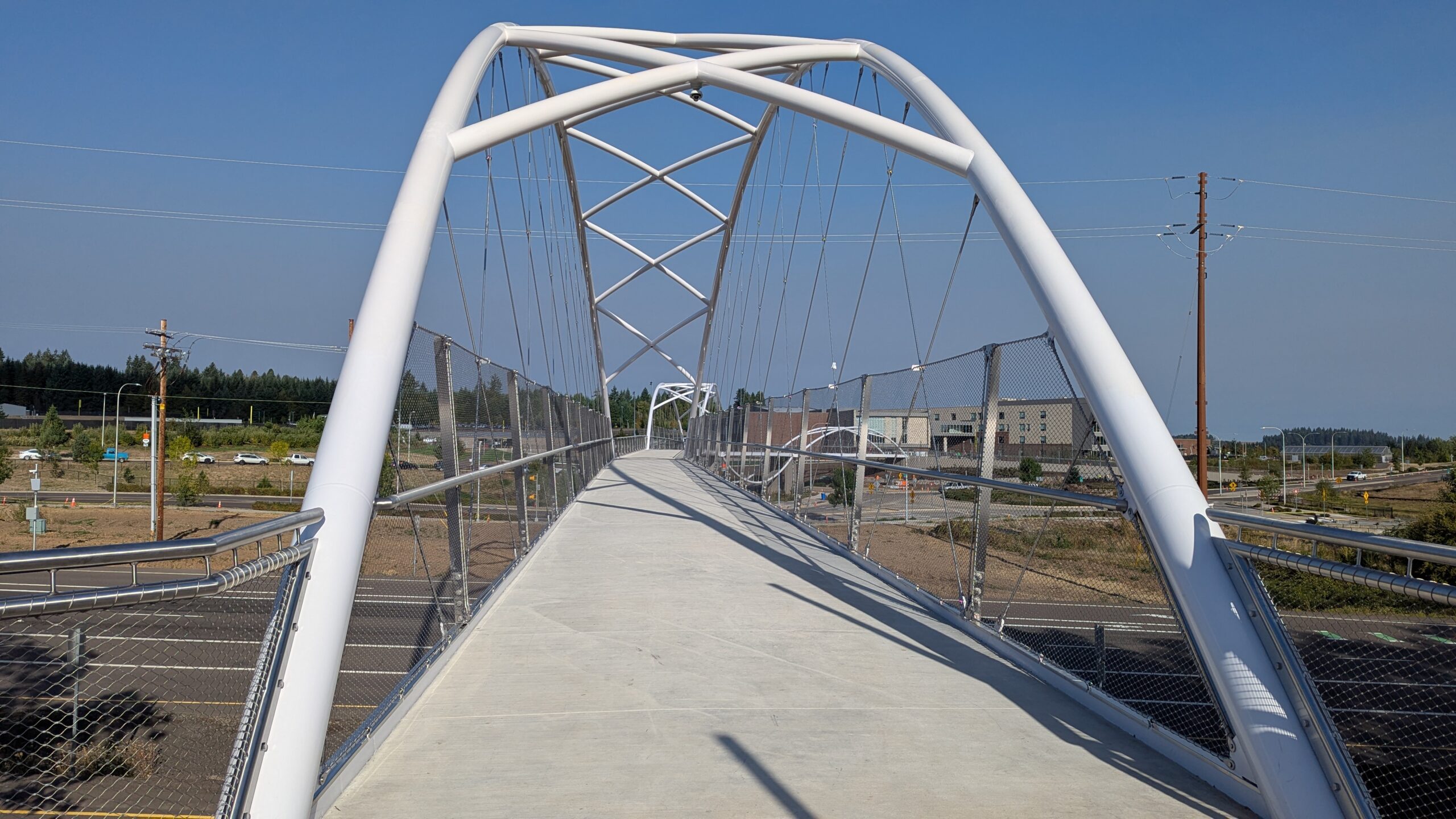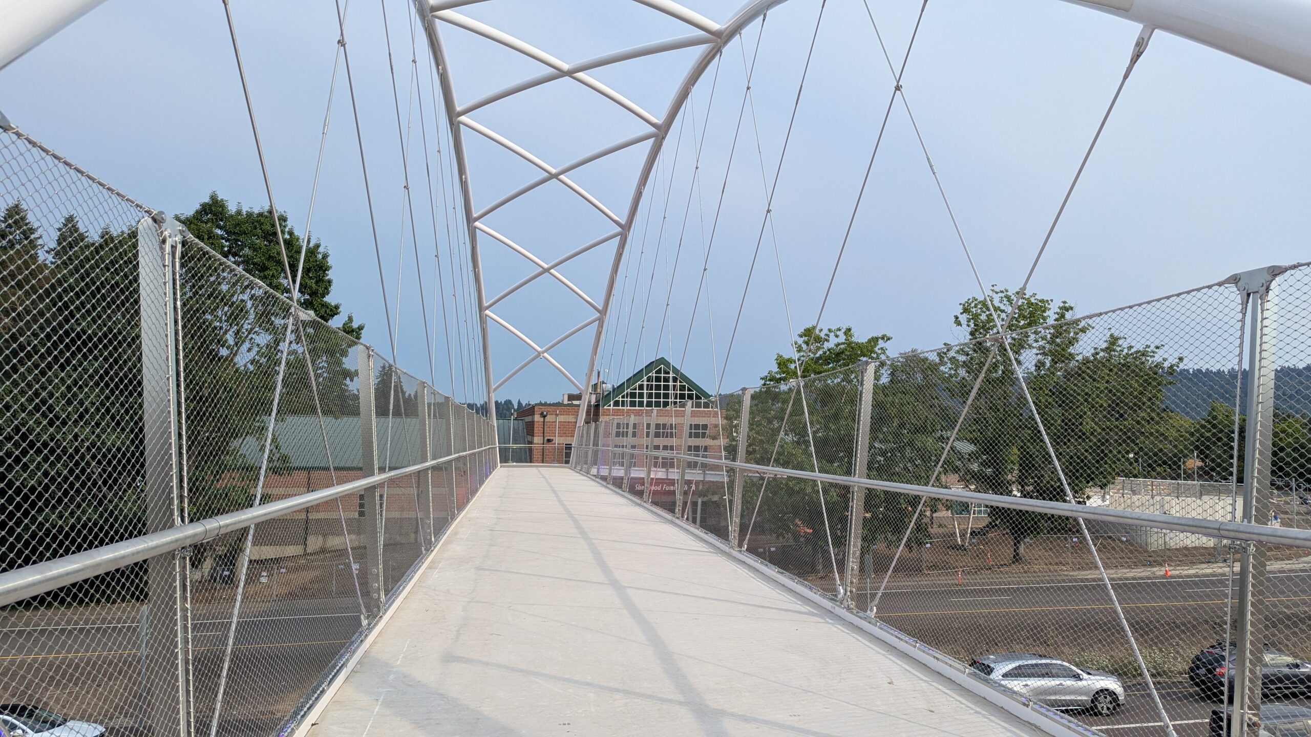 One year into construction, Sherwood’s Bicycle and Pedestrian Bridge over Highway 99W came to life in a matter of weeks when the bridge spans were installed this spring.